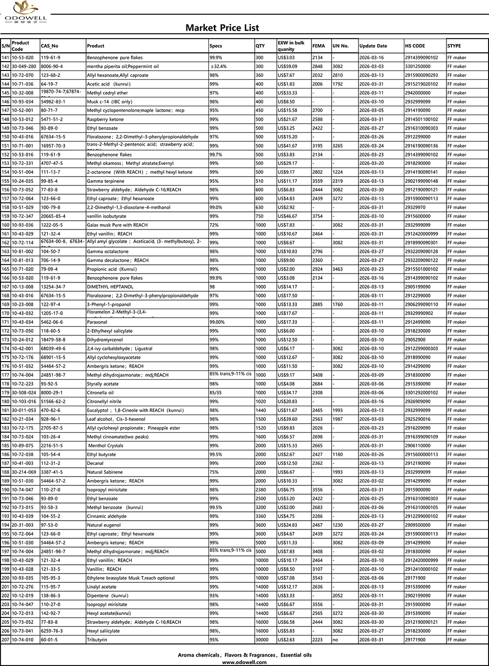 オドウェル-市場価格表-2026.3.1-2026.3.31